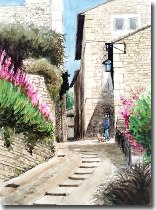 村の坂道(その2) (水彩 F3 2018-04)