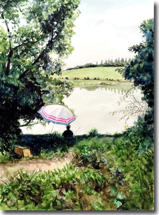 | 仲間と初夏のワンドを描きに出向く。初夏のワンドは緑の雑木に覆われ 何とも描きにくい。ワンドは冬景色のほうがいいかもと ボヤきながら それでもせっせと筆を走らす。 |