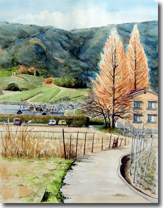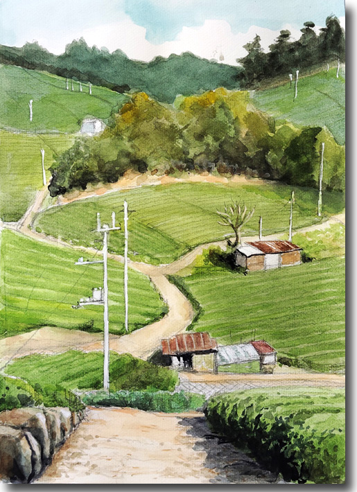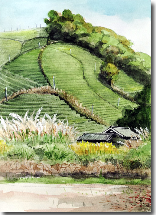 10月の茶畑(その2) (水彩 F4 2025-10) |