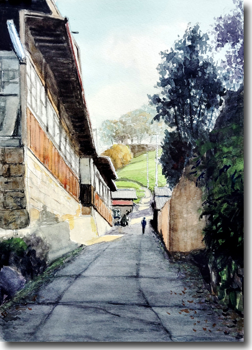前回訪れた折には この路の反対側から描いたのを思い出した。