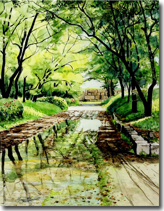 雨あがる(その2)(大阪城一隅) (水彩 F4 2025-05) |