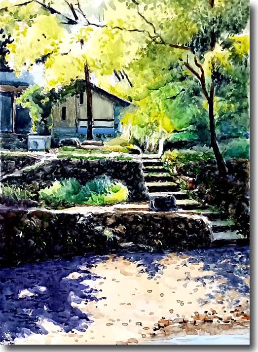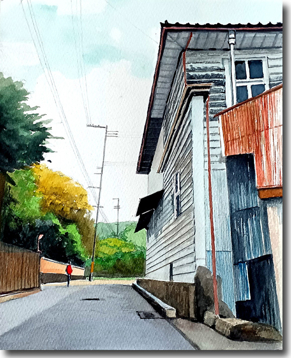 新緑の石切(その2) (水彩 F3 2024-04) |