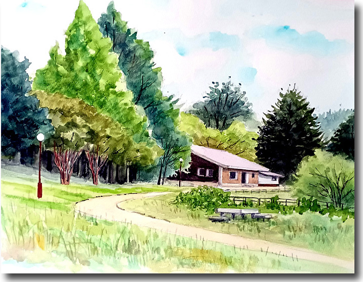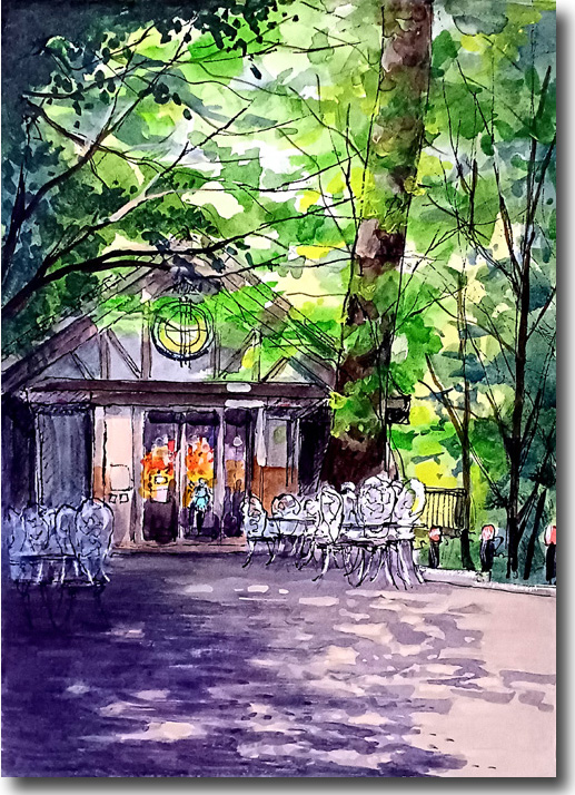 箕面渓谷(森のコーヒーショップ) (水彩 F4 2024-09) |