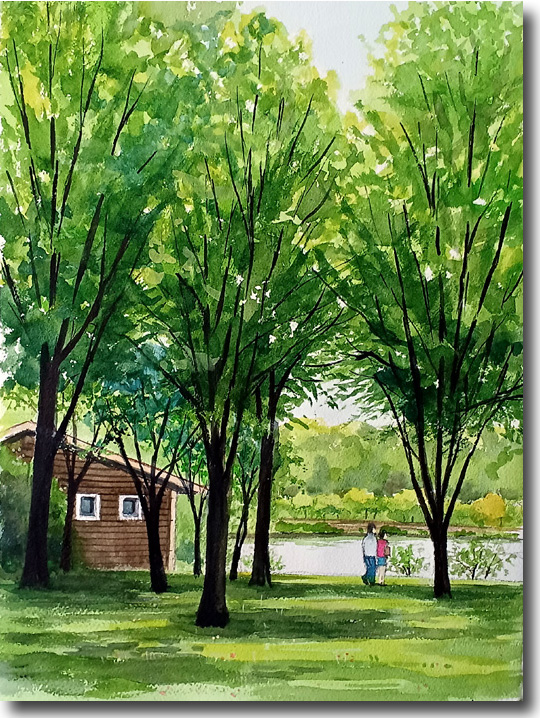 鶴見緑地、梅雨の晴れ間(その2) (水彩 F6 2024-06) |