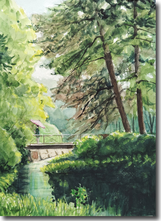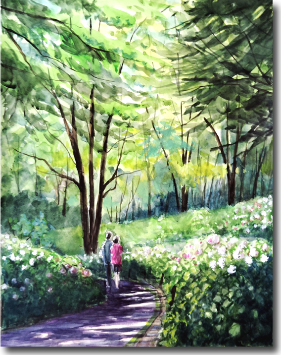 長居公園あじさい道(その2) (水彩 F4 2025-06) |