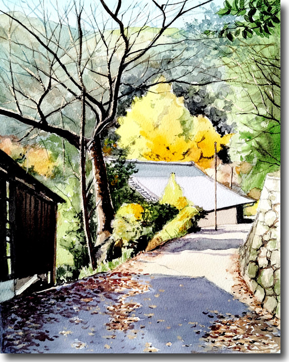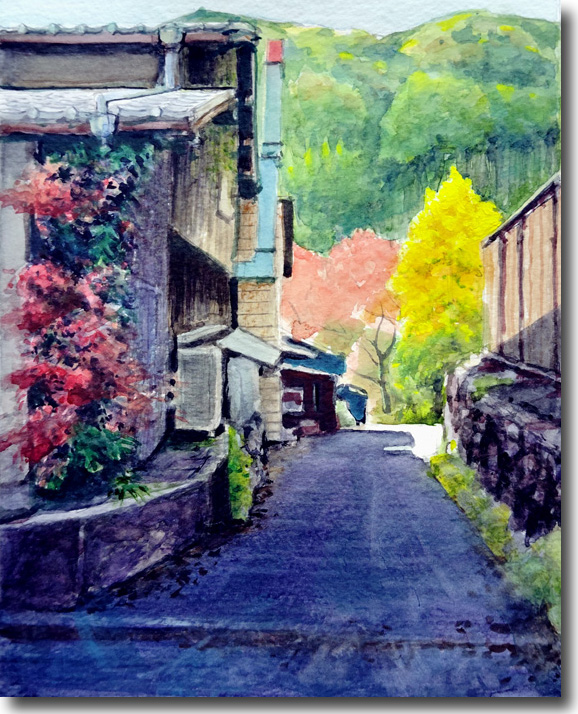 二の瀬紅葉(その6、裏道も紅葉) (水彩 F4 2025-11) |