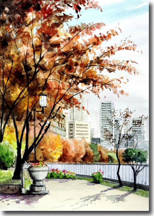 淀屋橋遊歩道の紅葉(その2) (水彩 F6 2025-11) |